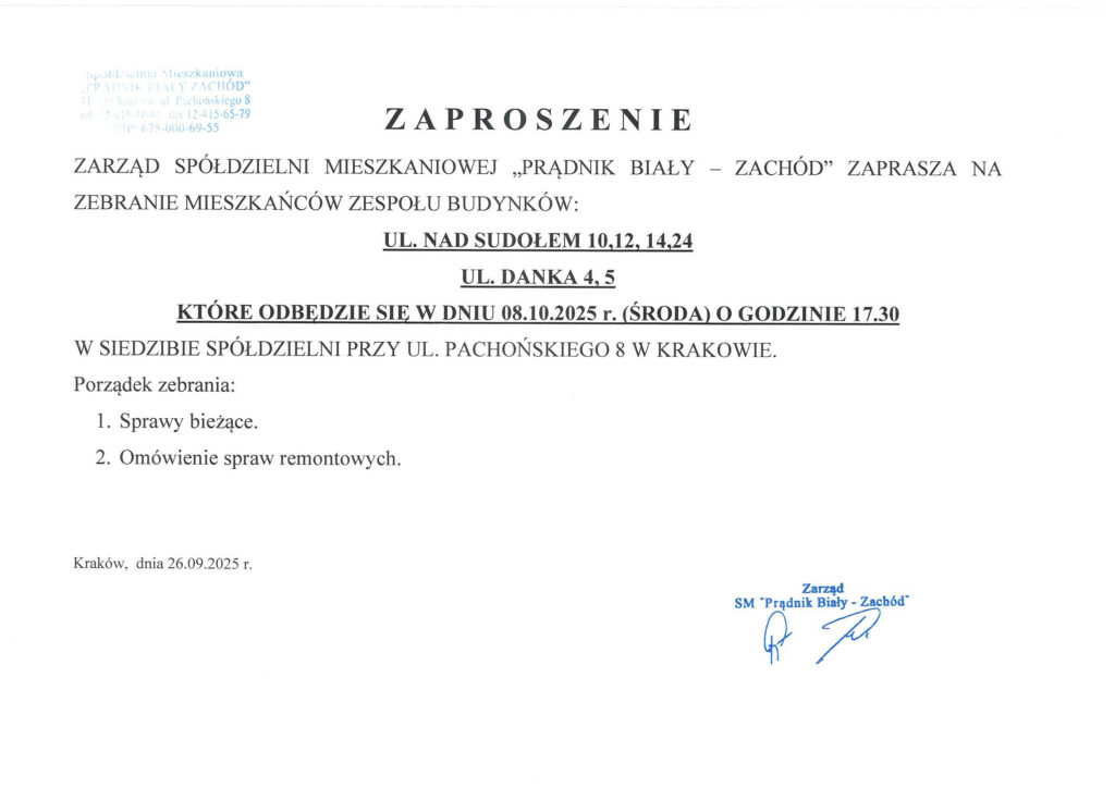 • 08.10.2025 o godz. 17:30 – zebranie Zespołu I