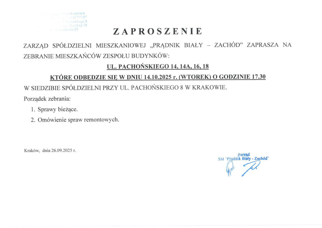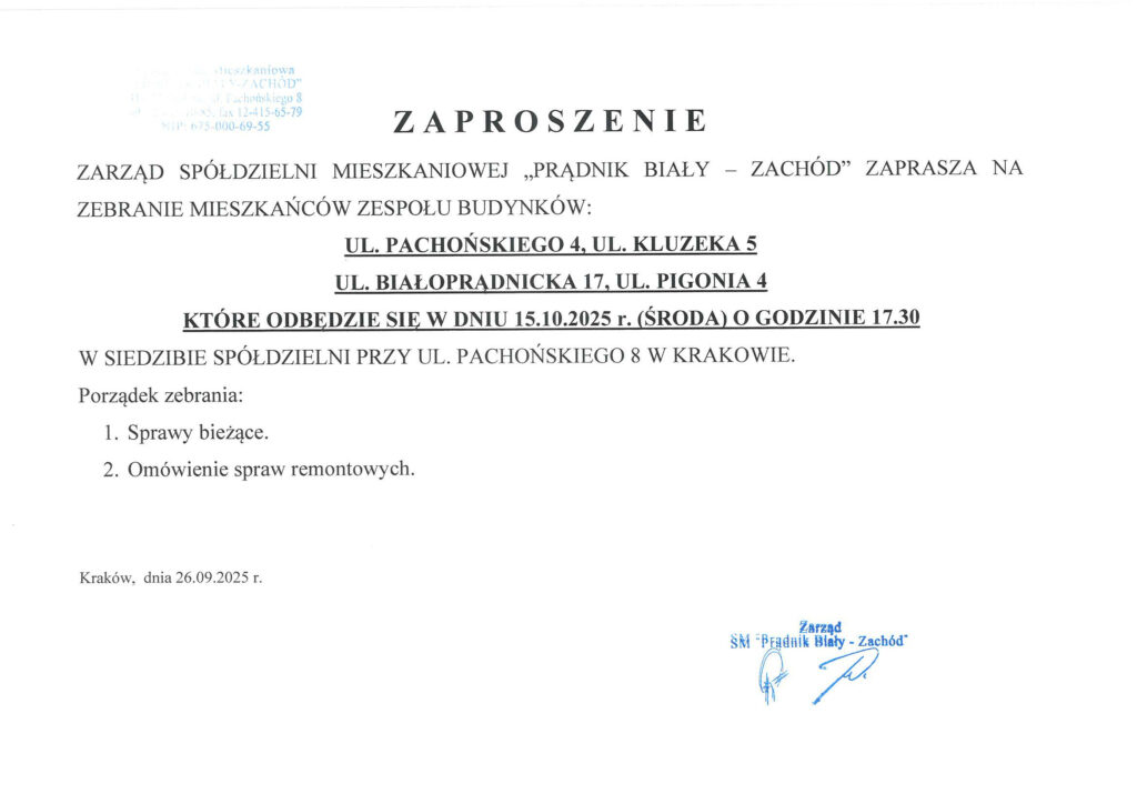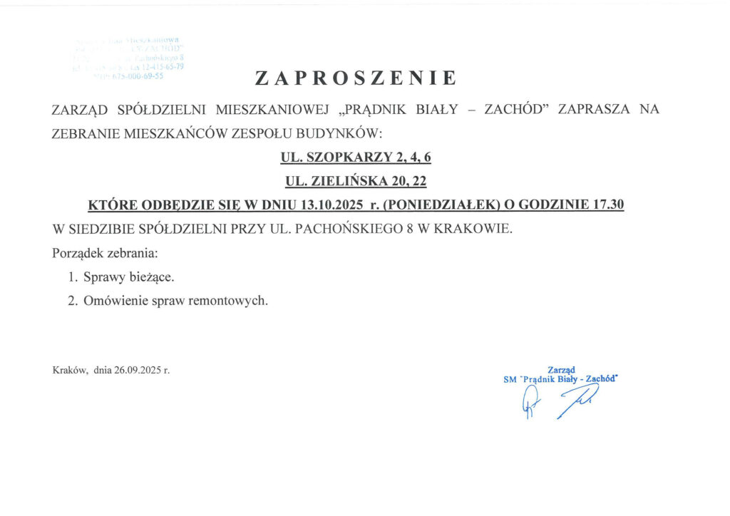 • 13.10.2025 o godz. 17:30 – zebranie Zespołu II