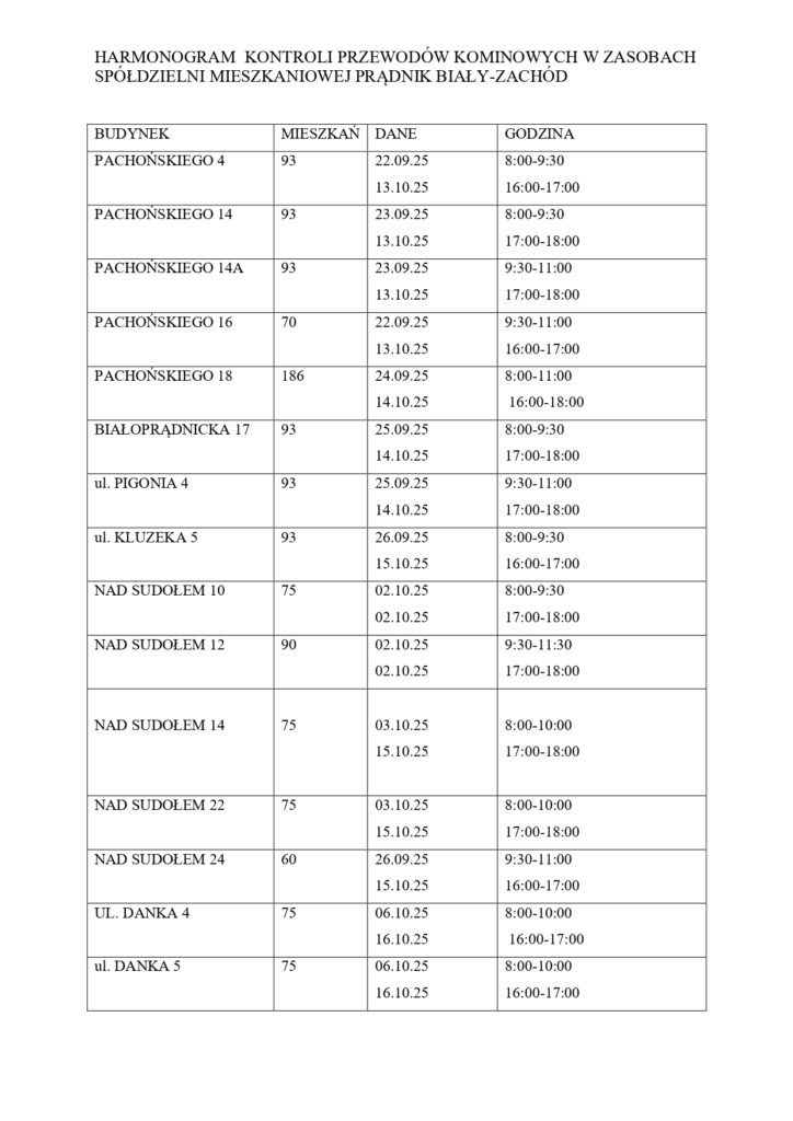 Harmonogram obowiązkowych przeglądów kominiarskich