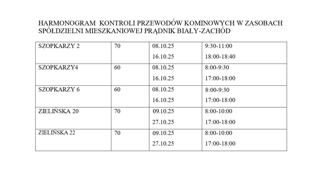 Posted in Aktualności, Ogłoszenia | Możliwość komentowania Harmonogram obowiązkowych przeglądów kominiarskich została wyłączona