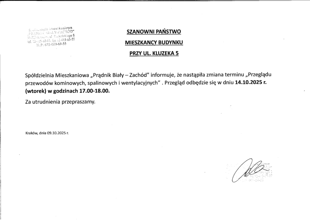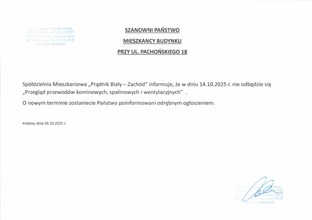Harmonogram obowiązkowych przeglądów gazowych 13-17.10.2025